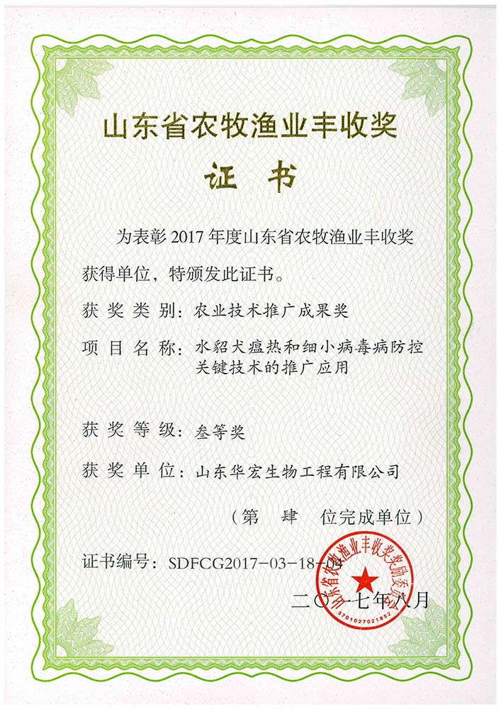 山东省农牧渔业丰收奖三等奖