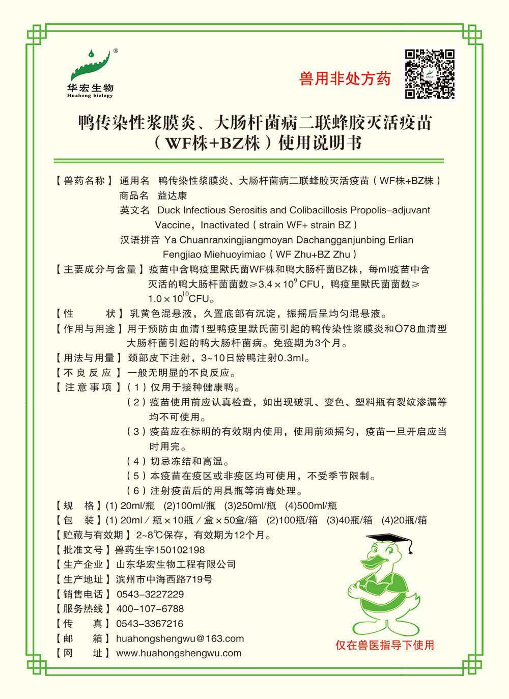 鸭传染性浆膜炎、大肠杆菌病二联蜂胶灭活疫苗(WF株+BZ株)